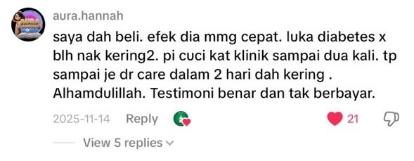Ya, sangat sesuai. Luka kencing manis (Diabetec Foot Ulcer) memerlukan proses pambaikan tisu yang cepat dan konsisten. Gel ini membantu mempercepat penghasilan tisu baru dan mengurangkan risiko jangkitan. Namun, jika luka berada pada tahap serius, disarankan untuk mendapatkan pemeriksaan doktor juga.