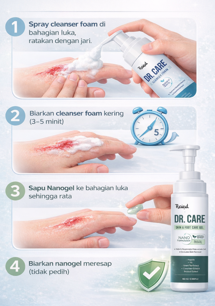 Membersihkan 99% kuman pada luka. Hanya perlu sapu dan tunggu ia kering